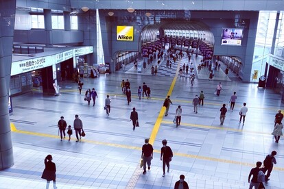 カフェは品川駅の遊歩道を見下ろせる位置にあり、朝夕の通勤ラッシュ時にはスーツを着た集団が一方に向かって黙ってぞろぞろと歩いていく珍しい光景を見られることから外国人観光客に人気になったという。