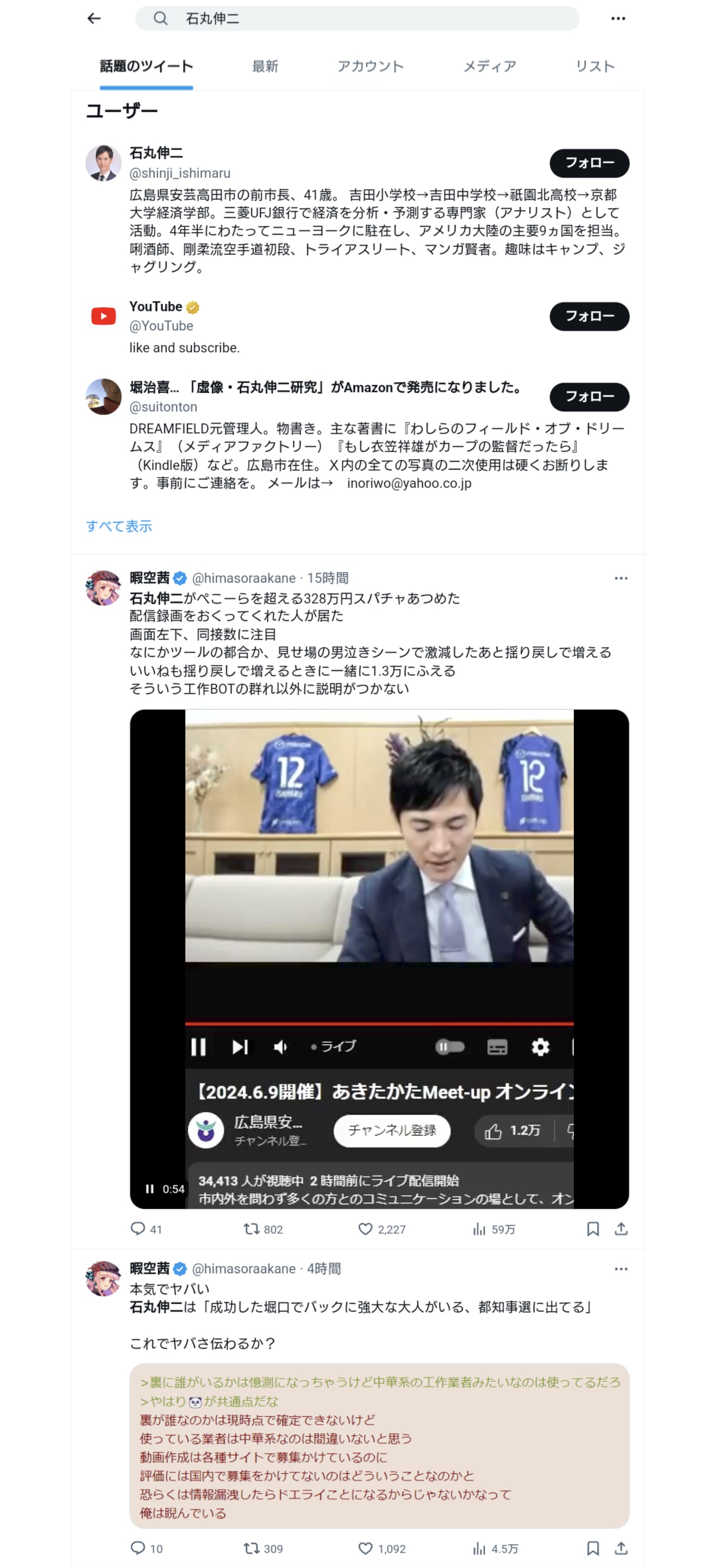 【ぺこーら超えのいしーら】画像検索で谷さん遂に許される オレ的ゲーム速報@JINの石丸伸二さんの記事のコメ欄だけ異常事態に 暇空(エアコンに)負けたー!