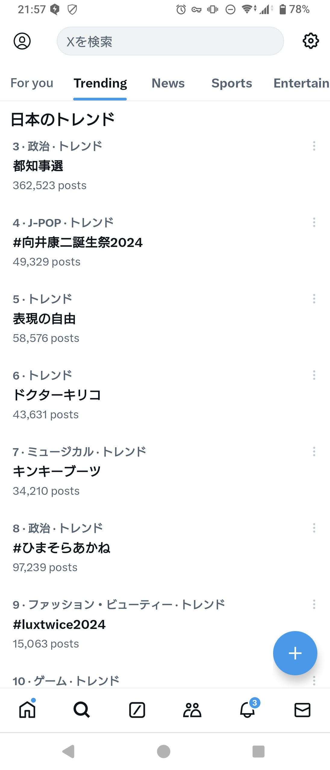 全体トレンドにいるな