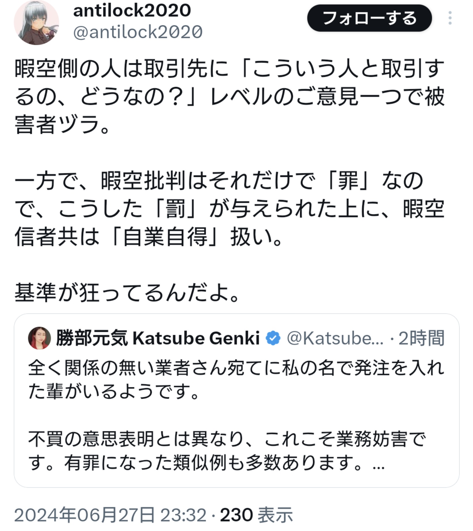 ん~、暇空批判はしょうがないと思ってたけど