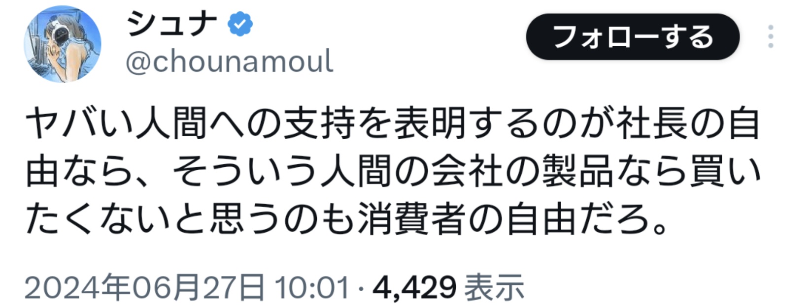 37: 警備員[Lv.19](ジパング) (ワッチョイW ffea-LBbS) [US] 2024/06/28(金) 00:53:05.70 ID:U9O9RvwE0