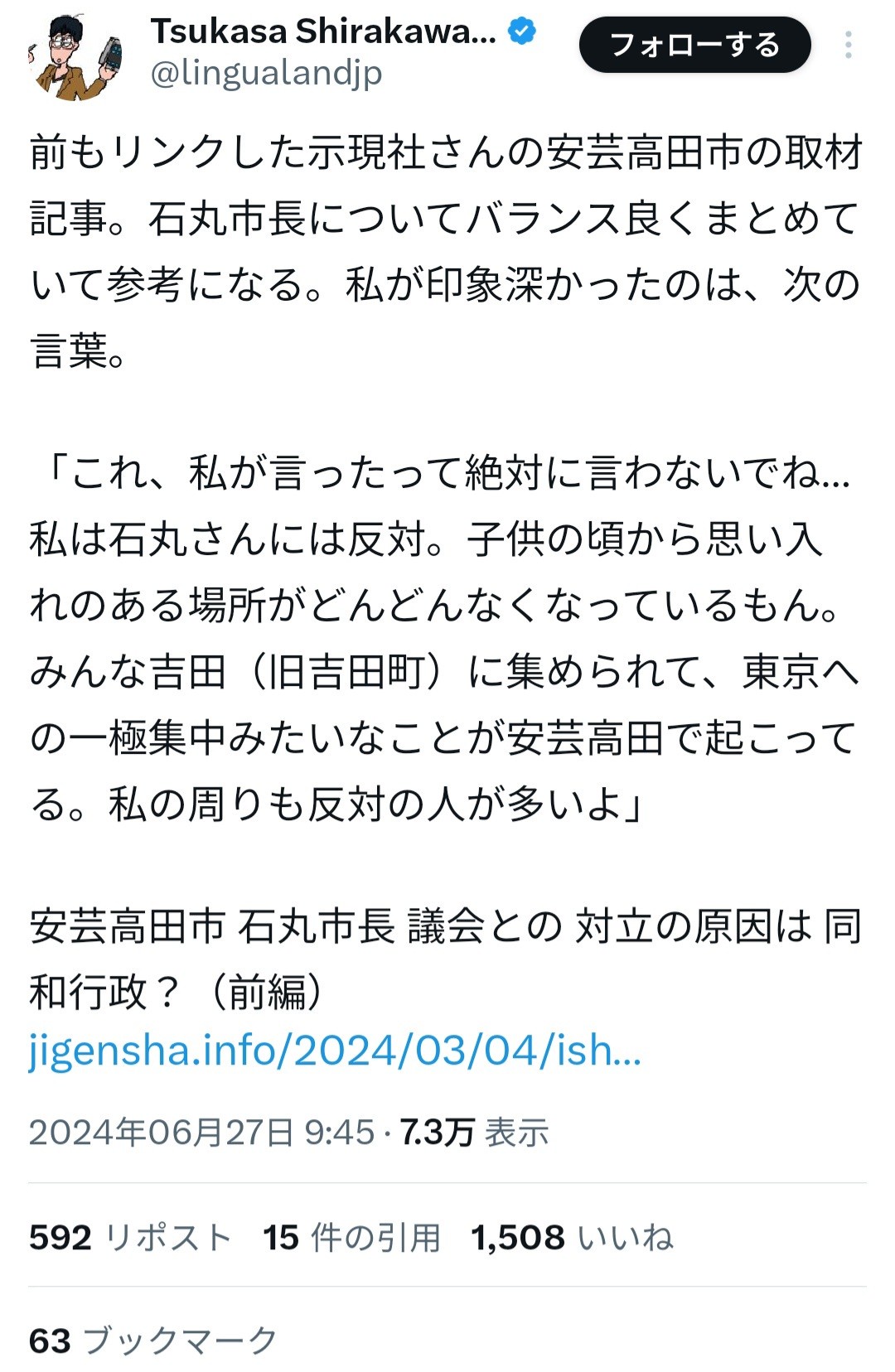>これに石丸伸二市長は「注意が適当ではなったから、無視しただけです。筋が通っていなかったから」とおっしゃっていました。