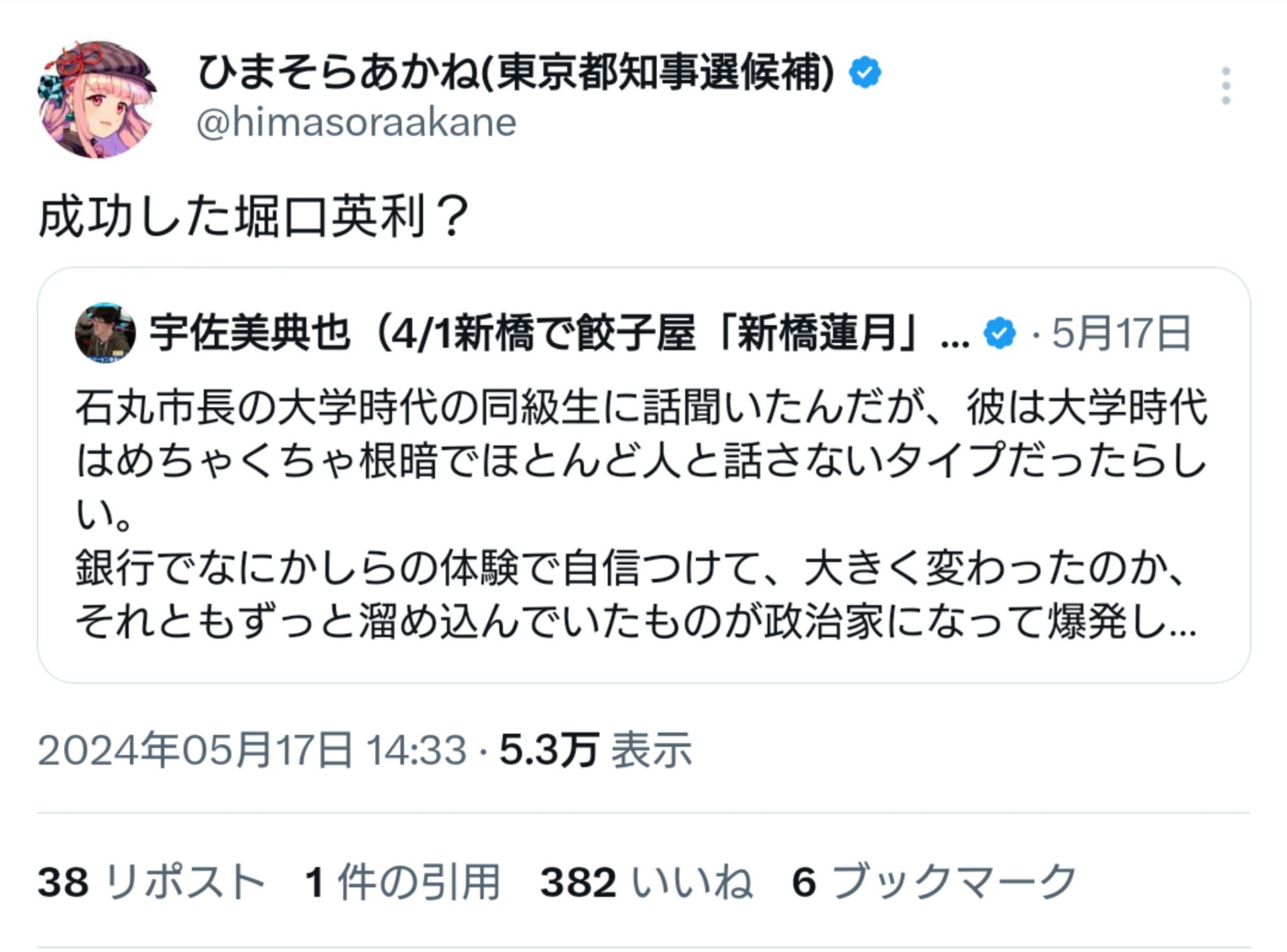 ↓ひまそらあかね(暇空茜)東京都知事選挙関連動画↓
