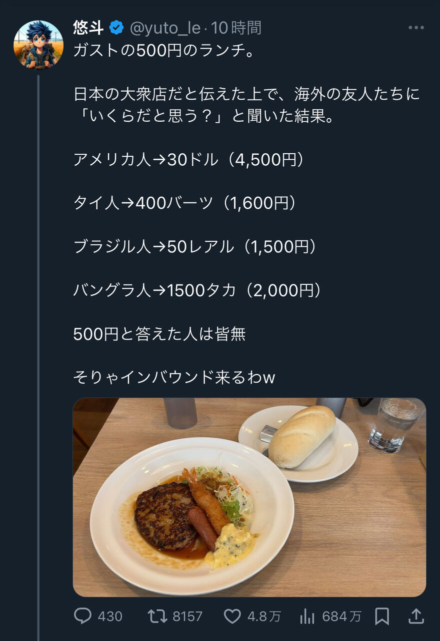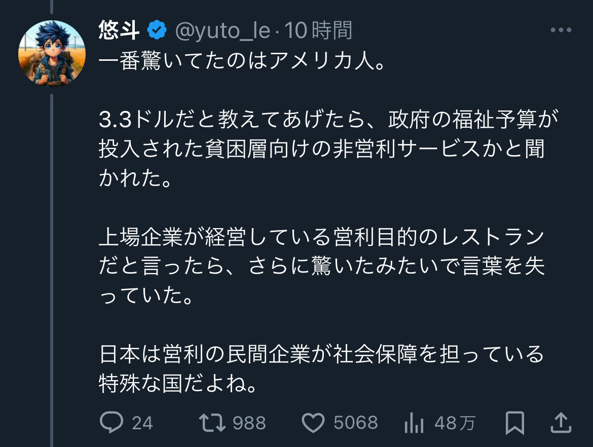 アメリカ人が見た日本人の昼食に失笑!?貧困支援サービスのメシと勘違いされた理由 2024年3月6日 最終更新日時 : 2024年3月6日 admin 【MLB 】大谷翔平、2試合ぶりの46号ホームランで自己最多タイに!記録を46-46に更新!! 中国で増加する「無敵の人」 もう何も怖くない「無敵の人」による捨て鉢な犯罪が増加している [9/8] [昆虫図鑑★] 【MHWilds】モンスターハンターワイルズ 各メーカーの記事から気になる内容をまとめて紹介 【ウマ娘】カフェ『当店は喫茶店だと何度も…ご注文のオグリカツ丼です』 【釣具屋】ダイソー、環境配慮型ルアーを発売 開発に1年、植物由来の原料を採用 【芸能】山本彩(31)マネジャー撮影の全身ショットが 【有能】ワイ、YouTubeの切り抜き動画で200万稼いでしまうwwwww 【衝撃】3大避けるべき賃貸物件の特徴「木造」「1階」→あとは『これ』wwwww 【衝撃】ワイ、ハンターカブを契約してきた結果wwwww 『ジェラルド・ウィギンス』 アメリカ人が見た日本人の昼食に失笑!?貧困支援サービスのメシと勘違いされた理由 (出典 ameblo.jp) (出典 アメリカ人、日本人の昼食を見て失笑。「いやこれ貧困支援サービスのメシでしょ?w」) 1 それでも動く名無し :2024/03/03(日) 13:07:40.96 ID:YAtmOh/400303 (出典 i.imgur.com) (出典 i.imgur.com) (出典 アメリカ人、日本人の昼食を見て失笑。「いやこれ貧困支援サービスのメシでしょ?w」) 続きを読む 続きを見る 【MLB 】大谷翔平、2試合ぶりの46号ホームランで自己最多タイに!記録を46-46に更新!! 中国で増加する「無敵の人」 もう何も怖くない「無敵の人」による捨て鉢な犯罪が増加している [9/8] [昆虫図鑑★] 【MHWilds】モンスターハンターワイルズ 各メーカーの記事から気になる内容をまとめて紹介 【ウマ娘】カフェ『当店は喫茶店だと何度も…ご注文のオグリカツ丼です』 【釣具屋】ダイソー、環境配慮型ルアーを発売 開発に1年、植物由来の原料を採用 【芸能】山本彩(31)マネジャー撮影の全身ショットが 【有能】ワイ、YouTubeの切り抜き動画で200万稼いでしまうwwwww 【衝撃】3大避けるべき賃貸物件の特徴「木造」「1階」→あとは『これ』wwwww 関連記事 関連記事はありません。