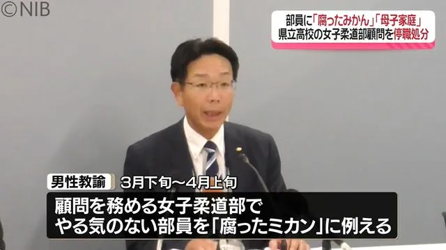 生徒を「腐ったみかん」に例えるなど不適切な指導・発言を繰り返していたとして、長崎県は県立高校の女子柔道部で顧問を務める46歳の男性教諭を停職6か月の懲戒処分にしました。