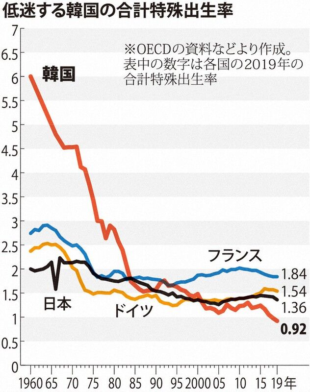 2018年以来、経済協力開発機構(OECD)加盟国で出産率が1を下回っているのは韓国だけだ。