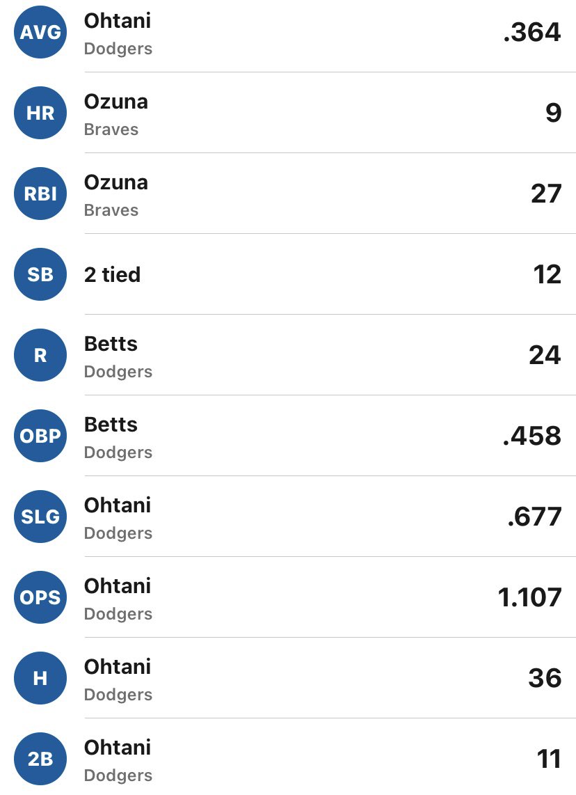 【悲報】大谷翔平さん、打率、長打率、OPS、安打数メジャーリーグ1位wwwwwwwwww