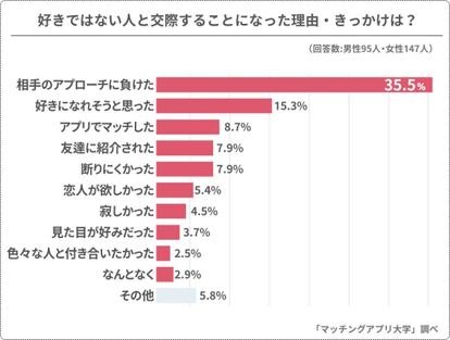 調査対象:18歳~39歳の好きでない異性とお付き合いした経験がある男女