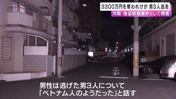ベトナム人「現金3300万円をリュックで運んでたら、強盗に襲われた」 大阪市東住吉区 2024年2月27日 最終更新日時 : 2024年2月27日 admin 【MLB 】大谷翔平、2試合ぶりの46号ホームランで自己最多タイに!記録を46-46に更新!! 中国で増加する「無敵の人」 もう何も怖くない「無敵の人」による捨て鉢な犯罪が増加している [9/8] [昆虫図鑑★] 【MHWilds】モンスターハンターワイルズ 各メーカーの記事から気になる内容をまとめて紹介 【ウマ娘】カフェ『当店は喫茶店だと何度も…ご注文のオグリカツ丼です』 【釣具屋】ダイソー、環境配慮型ルアーを発売 開発に1年、植物由来の原料を採用 【芸能】山本彩(31)マネジャー撮影の全身ショットが 【有能】ワイ、YouTubeの切り抜き動画で200万稼いでしまうwwwww 【衝撃】3大避けるべき賃貸物件の特徴「木造」「1階」→あとは『これ』wwwww 【衝撃】ワイ、ハンターカブを契約してきた結果wwwww 『ジェラルド・ウィギンス』 ベトナム人「現金3300万円をリュックで運んでたら、強盗に襲われた」 大阪市東住吉区 (出典 fnn.ismcdn.jp) 1 (東京都) [ニダ] :2024/02/27(火) 16:10:10.66 ID:eVZ92vi10 BE:123322212-PLT(13121) 3300万円強奪被害か ベトナム人男性「リュックの現金を運んだら3人組に襲われた」2024/2/27 00:10 産経 続きを読む 続きを見る 【MLB 】大谷翔平、2試合ぶりの46号ホームランで自己最多タイに!記録を46-46に更新!! 中国で増加する「無敵の人」 もう何も怖くない「無敵の人」による捨て鉢な犯罪が増加している [9/8] [昆虫図鑑★] 【MHWilds】モンスターハンターワイルズ 各メーカーの記事から気になる内容をまとめて紹介 【ウマ娘】カフェ『当店は喫茶店だと何度も…ご注文のオグリカツ丼です』 【釣具屋】ダイソー、環境配慮型ルアーを発売 開発に1年、植物由来の原料を採用 【芸能】山本彩(31)マネジャー撮影の全身ショットが 【有能】ワイ、YouTubeの切り抜き動画で200万稼いでしまうwwwww 【衝撃】3大避けるべき賃貸物件の特徴「木造」「1階」→あとは『これ』wwwww 関連記事 関連記事はありません。