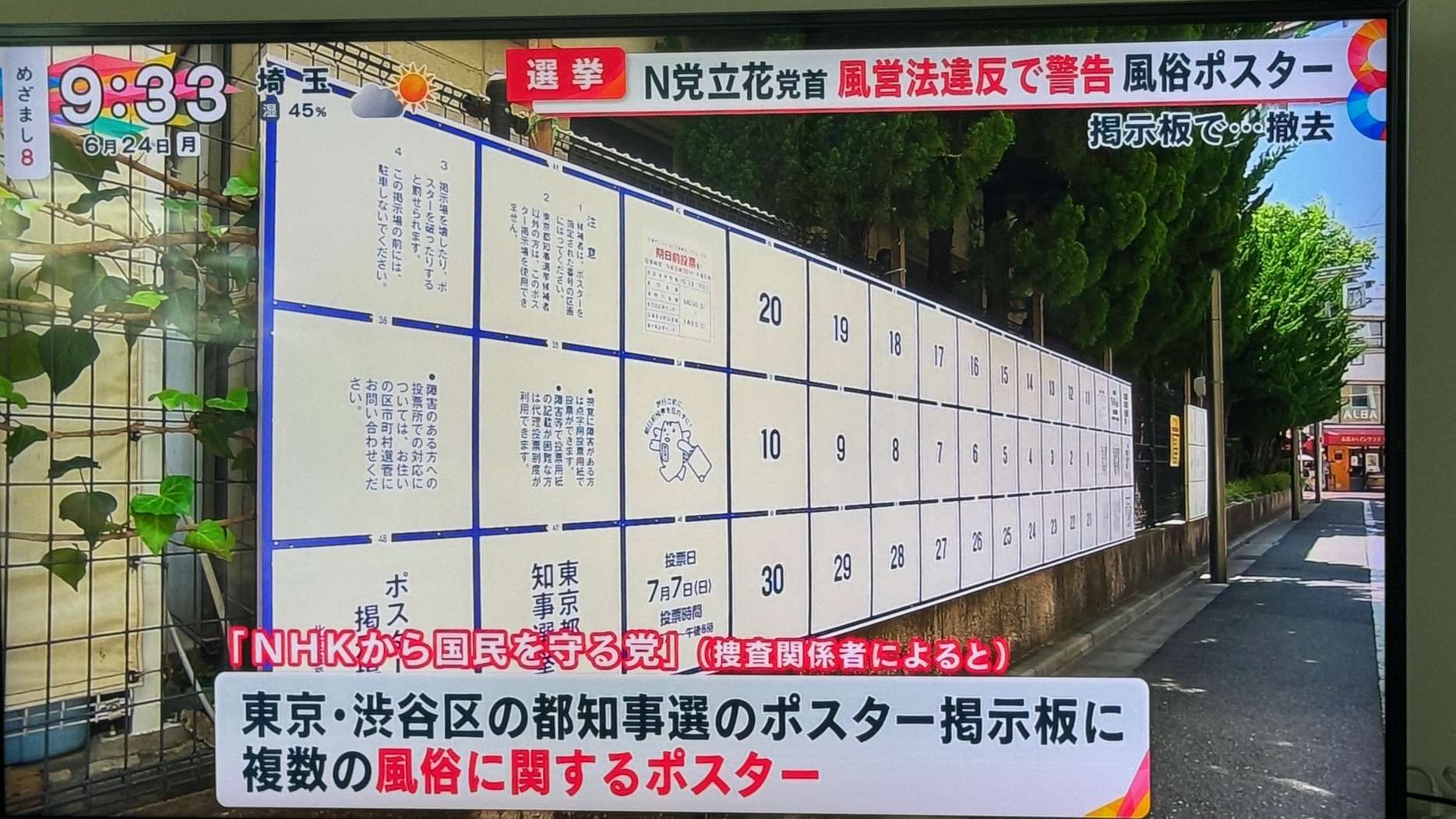 都知事選のポスター掲示を巡っては、ほぼ全裸の女性のポスターを張ったとして、警視庁が20日に都迷惑防止条例違反の疑いで候補者に警告した。