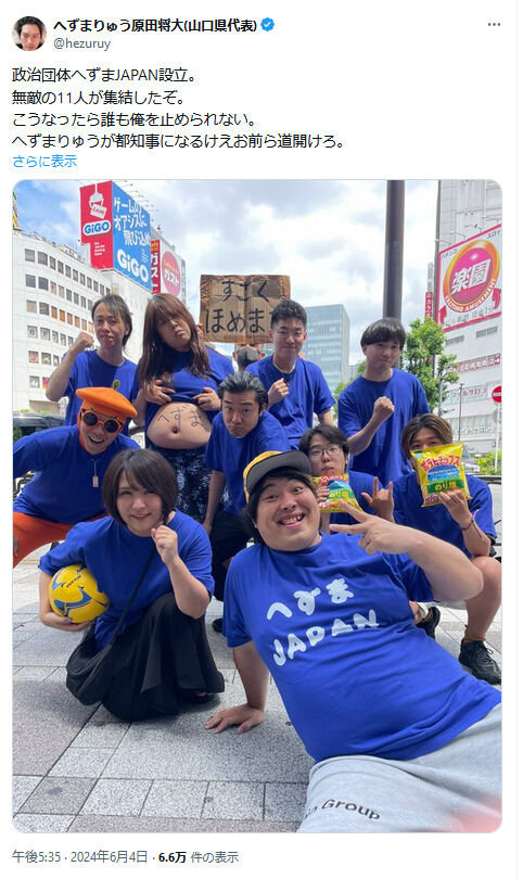 へずまりゅう氏、都知事選への出馬を表明!4つの公約を掲げる