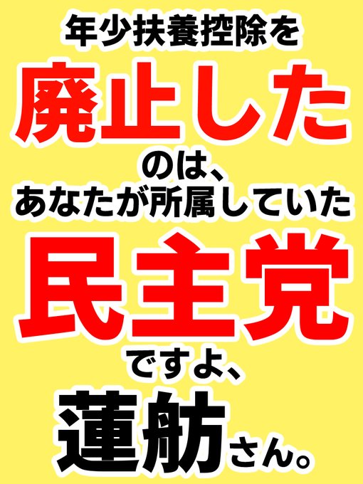 【外れないブーメラン】蓮舫氏「子供産めば控除増える」演説に総ツッコミ「年少扶養控除を奪ったのは民主党!」