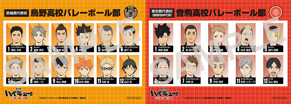 「劇場版 ハイキュー!! ゴミ捨て場の決戦」の入場者特典 (入場者プレゼント) 第6弾「選手名鑑風ブロマイド」をプレゼント:配布日:5月3日よりスタート