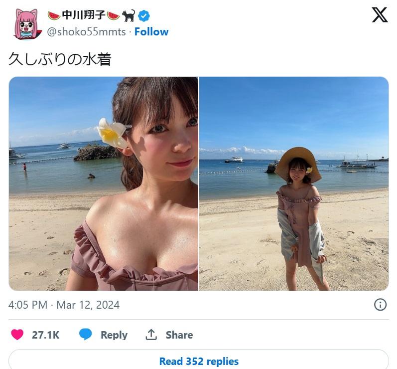 タレントの中川翔子が12日、自身のXを更新し、水着姿の写真を投稿した。